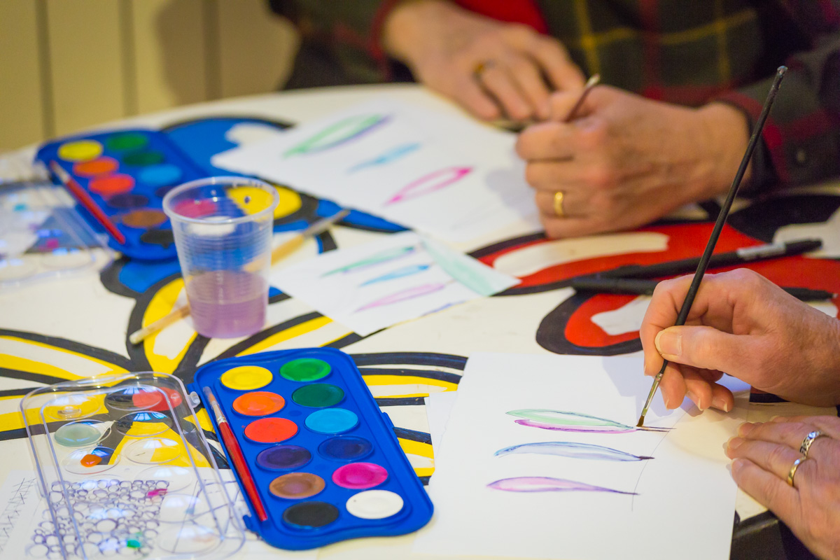 Following step, hands on work on sketch and composition, exercises for the hands and basic geometrical forms. Our group seated all together and their teachers were following the experience and working too at the same time.