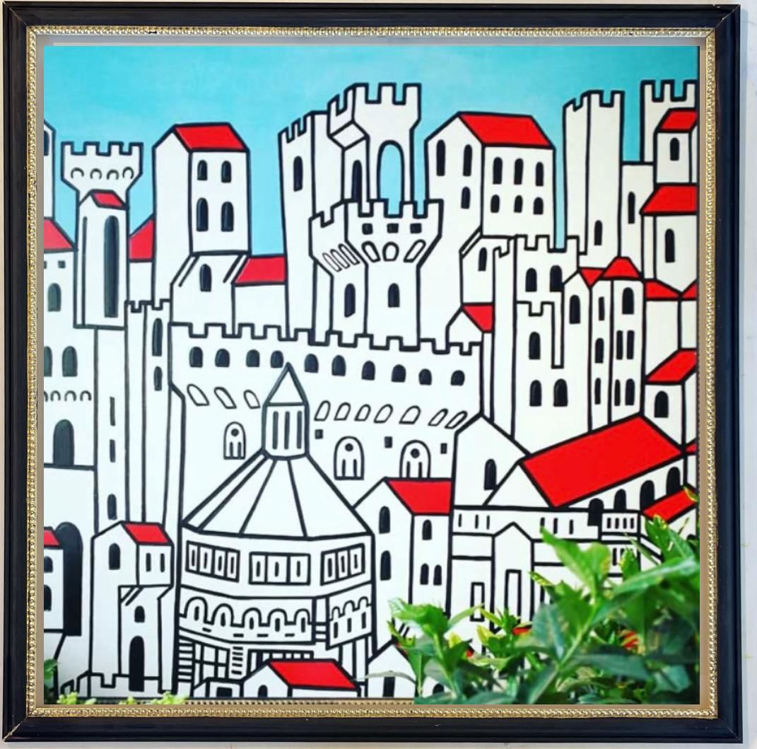 In particolare, l’opera mostra il paesaggio urbano Fiorentino, mettendo in evidenza il battistero e Palazzo Vecchio, edifici che rappresentano l’identità della città. Inoltre, riflette la complessità affascinante di una città che collega il passato con le opportunità future.