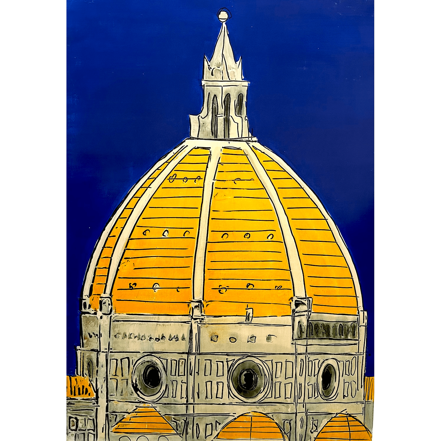 “Yellow Classic Dome in Blue” is a contemporary artwork inspired by the iconic Cathedral of Florence, representing the essence of the Iguarnieri artistic vision.