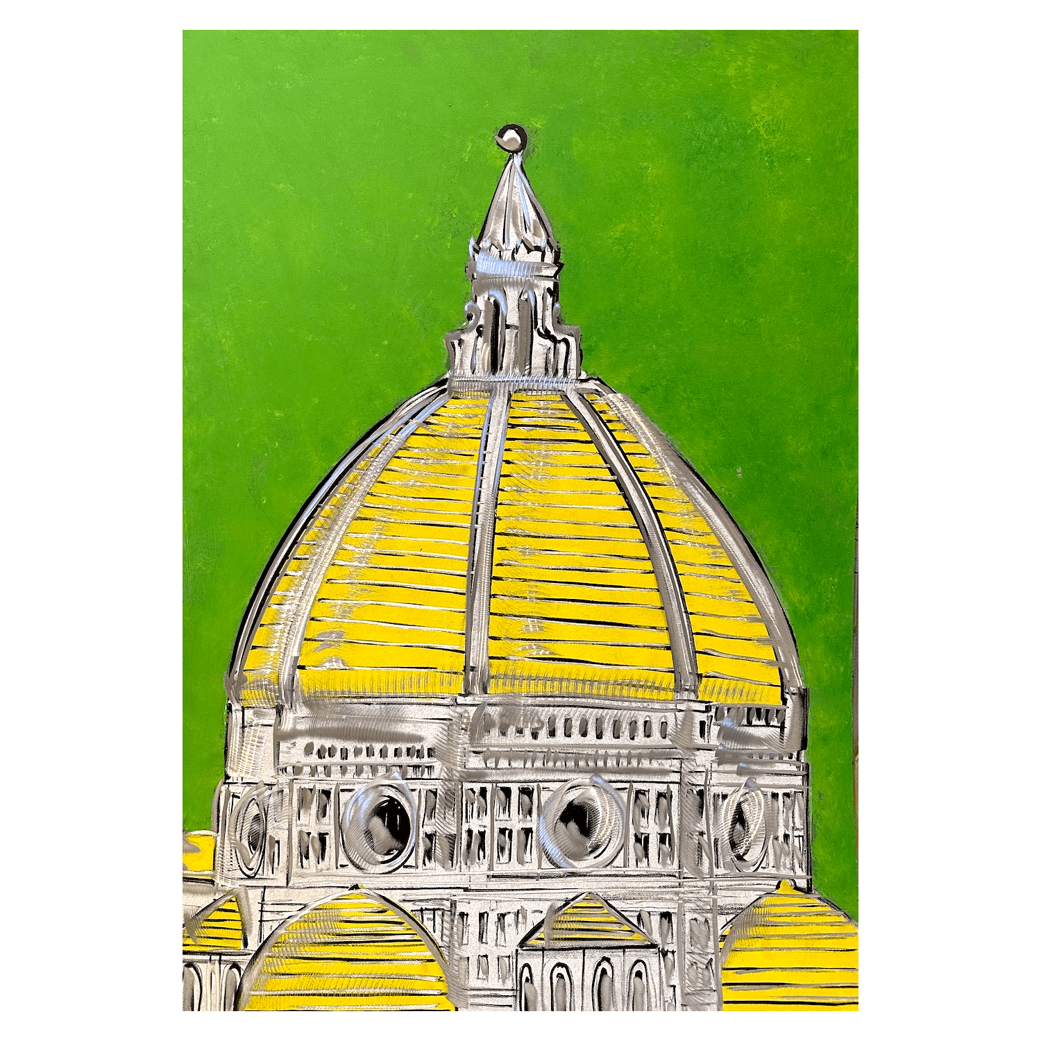 Yellow Dome in Green is a contemporary artwork inspired by the Cathedral of Florence, where the iconic dome stands out in particular yellow against a vibrant green background.